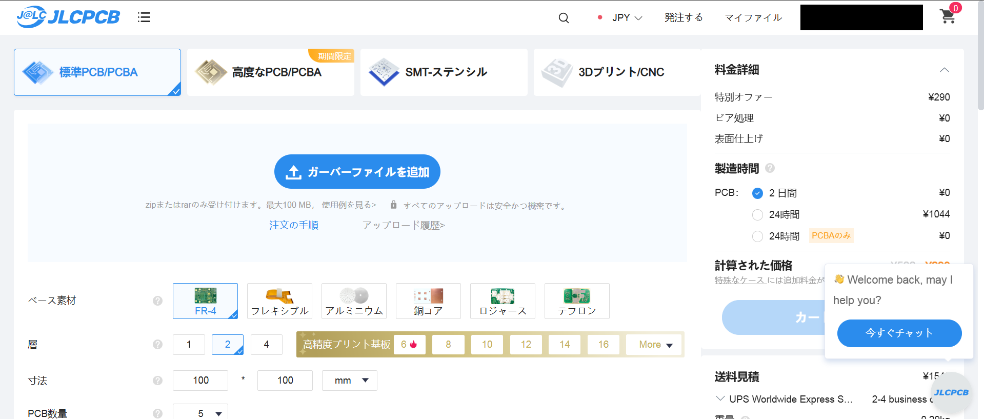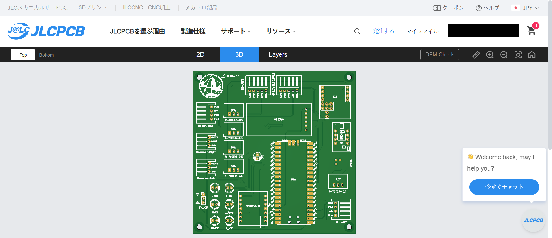 ガーバーデータが完成したら次はいよいよ発注です.ここをクリックしてJLCPCBにアクセスしてください.アクセスし,ログインすると右上の「発注する」というボタンをクリックします(図8).