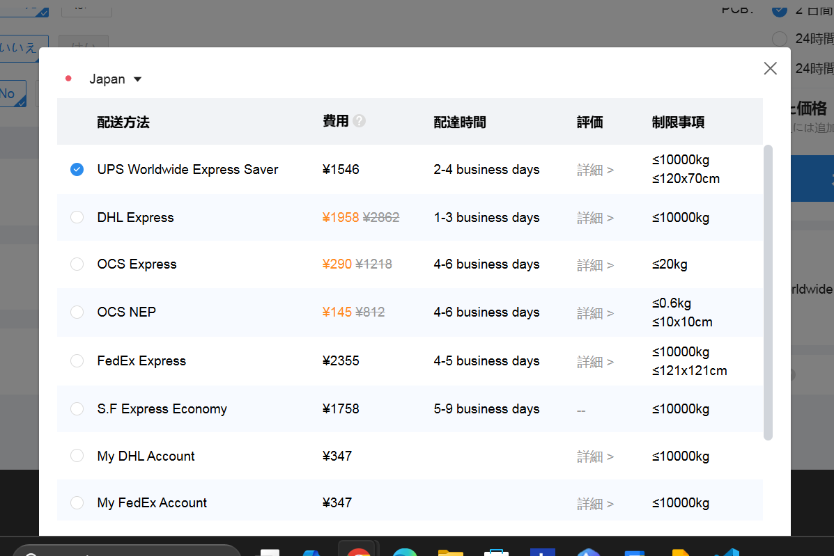 配送会社を選択出来たら,「カートに保存」をクリックします.そしてカートボタンを押し,注文を確認します(図15).