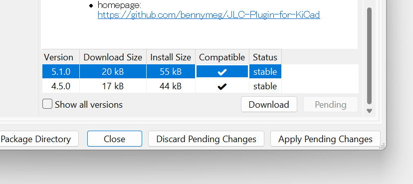 入力したら「Fabrication Toolkit」というプラグインが出てくるので”Install”をクリックします.クリックしたらウィンドウの右下”Apply Pending Changes”をクリックして変更を適用します.