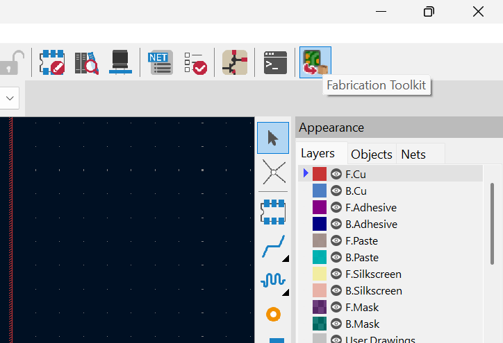 次にKiCadのツールバーの一番右にある”Fabrication Toolkit”をクリックします(図5).